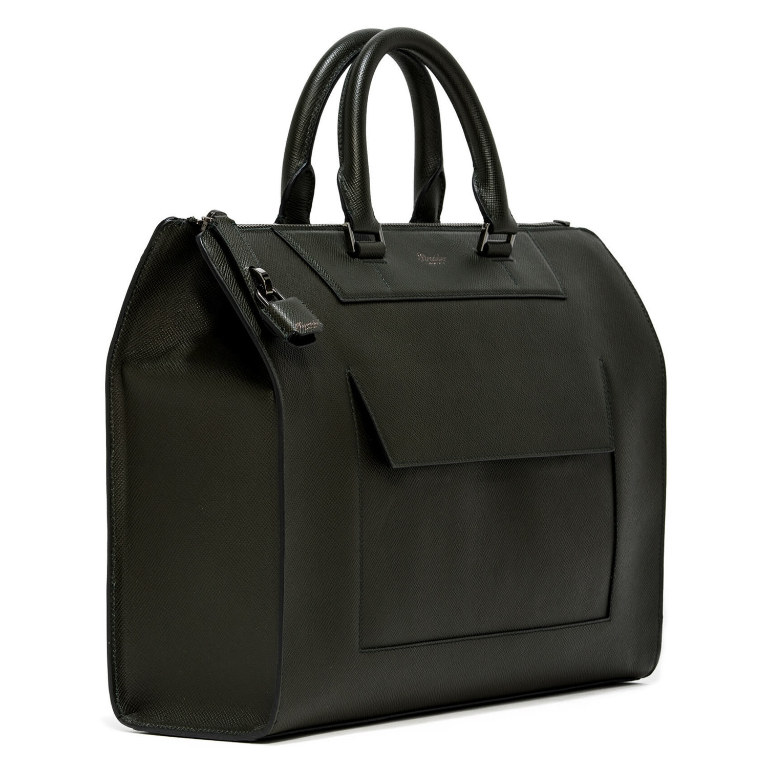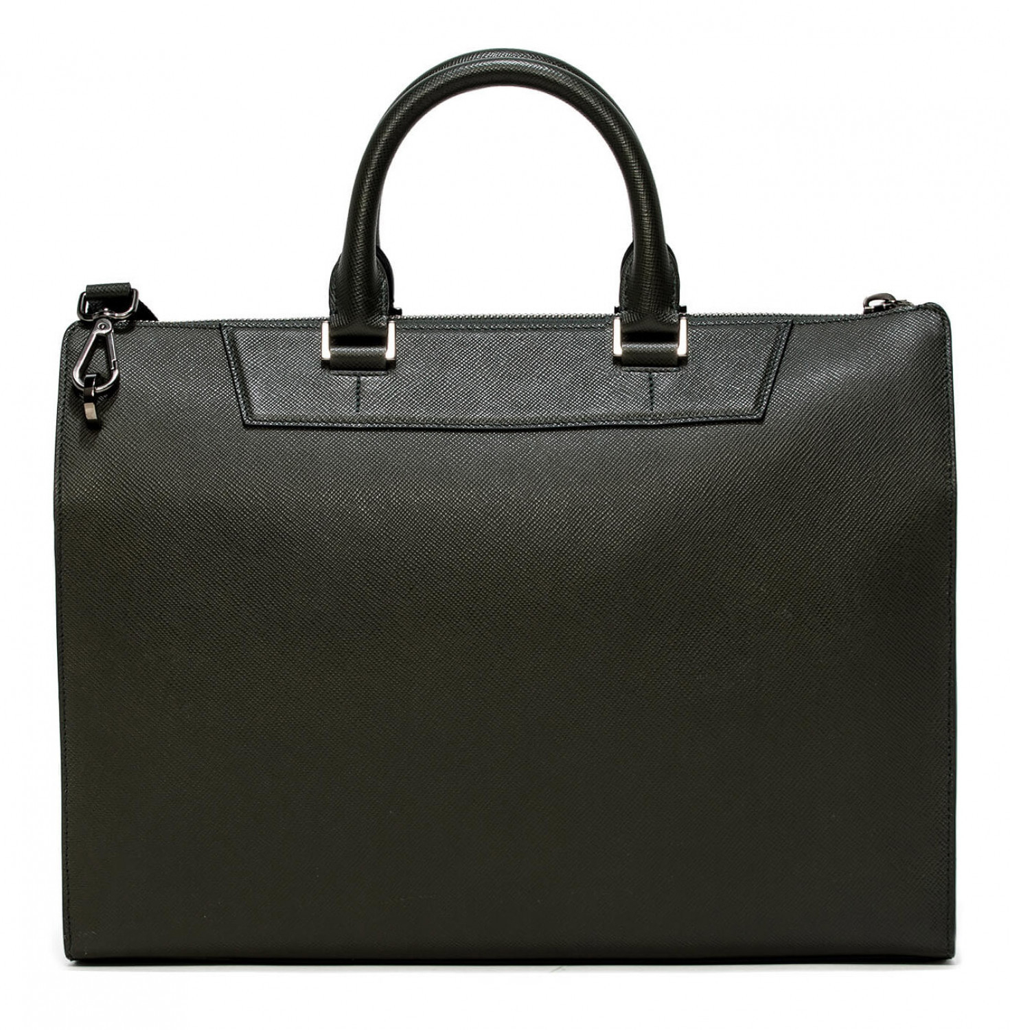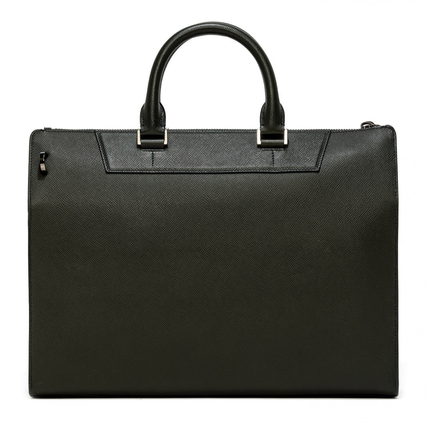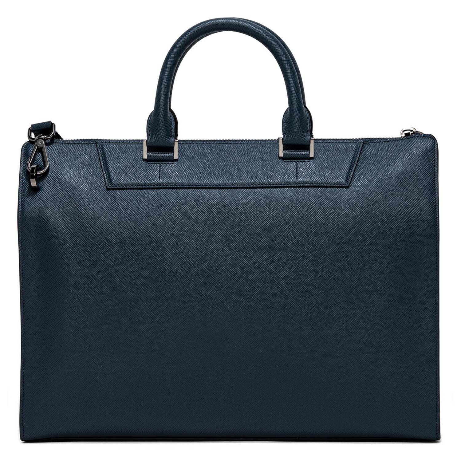 Mini Franzi oblique calfskin horizontal bag with 2 horizontal handles, zip closure and safety lock. Adjustable and removable shoulder strap, quick zip pocket. Personalized Pineider. Made in Italy. External pocket with magnetic closure. The interior features 1 padded laptop paded compartment, 1 large zip pocket, 1 ticket pocket, 2 storage pockets and a flat pen pocket.