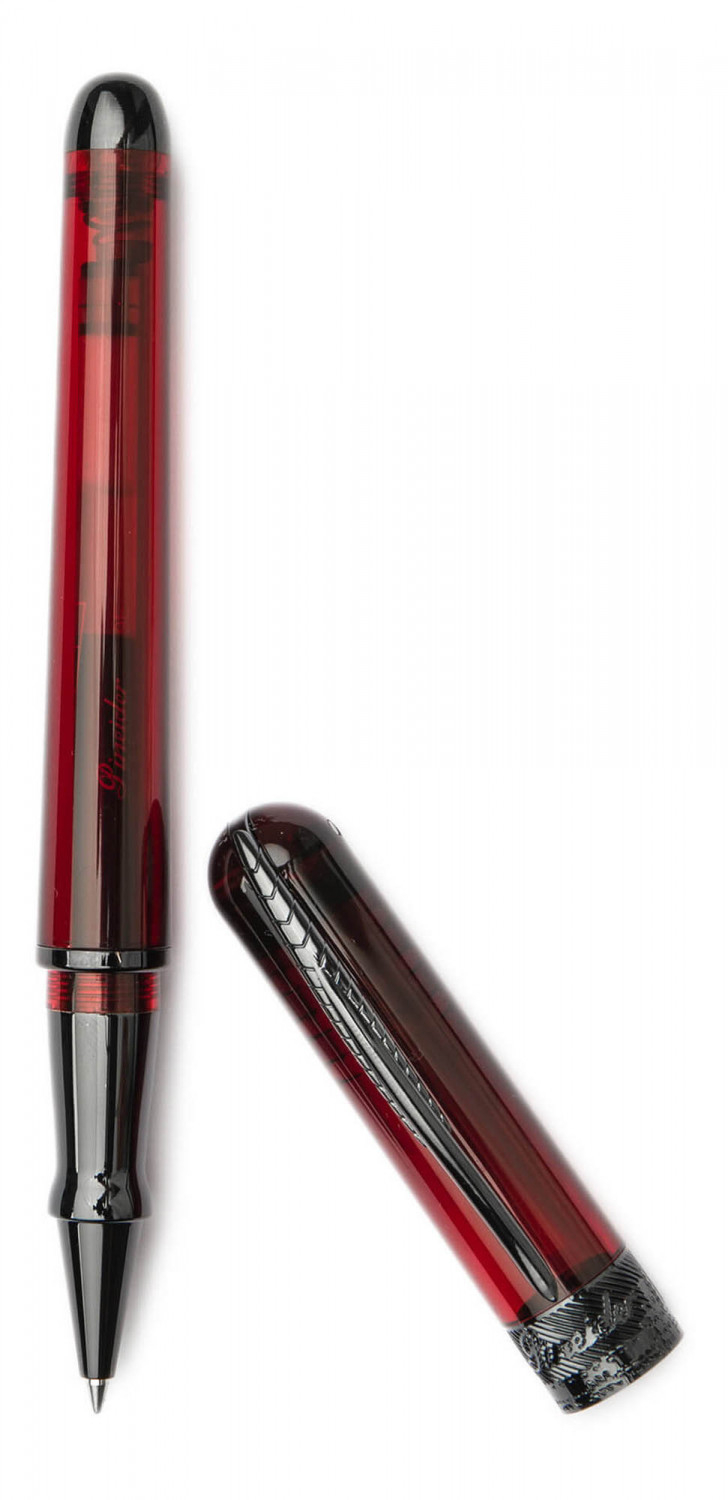 This rollerball is made of Ultraresina which makes it impact resistant. The transparency allows you to view the mechanism and the ink level. The ring is a tribute to Florence while the clip is inspired by the feather, an ancient writing instrument.