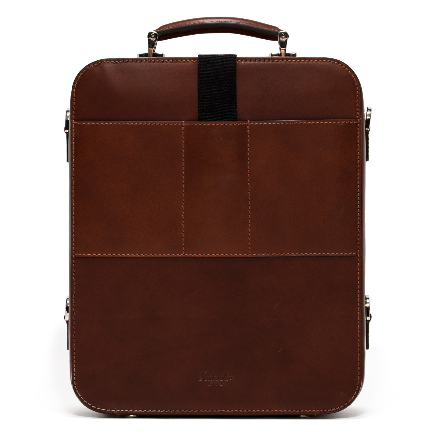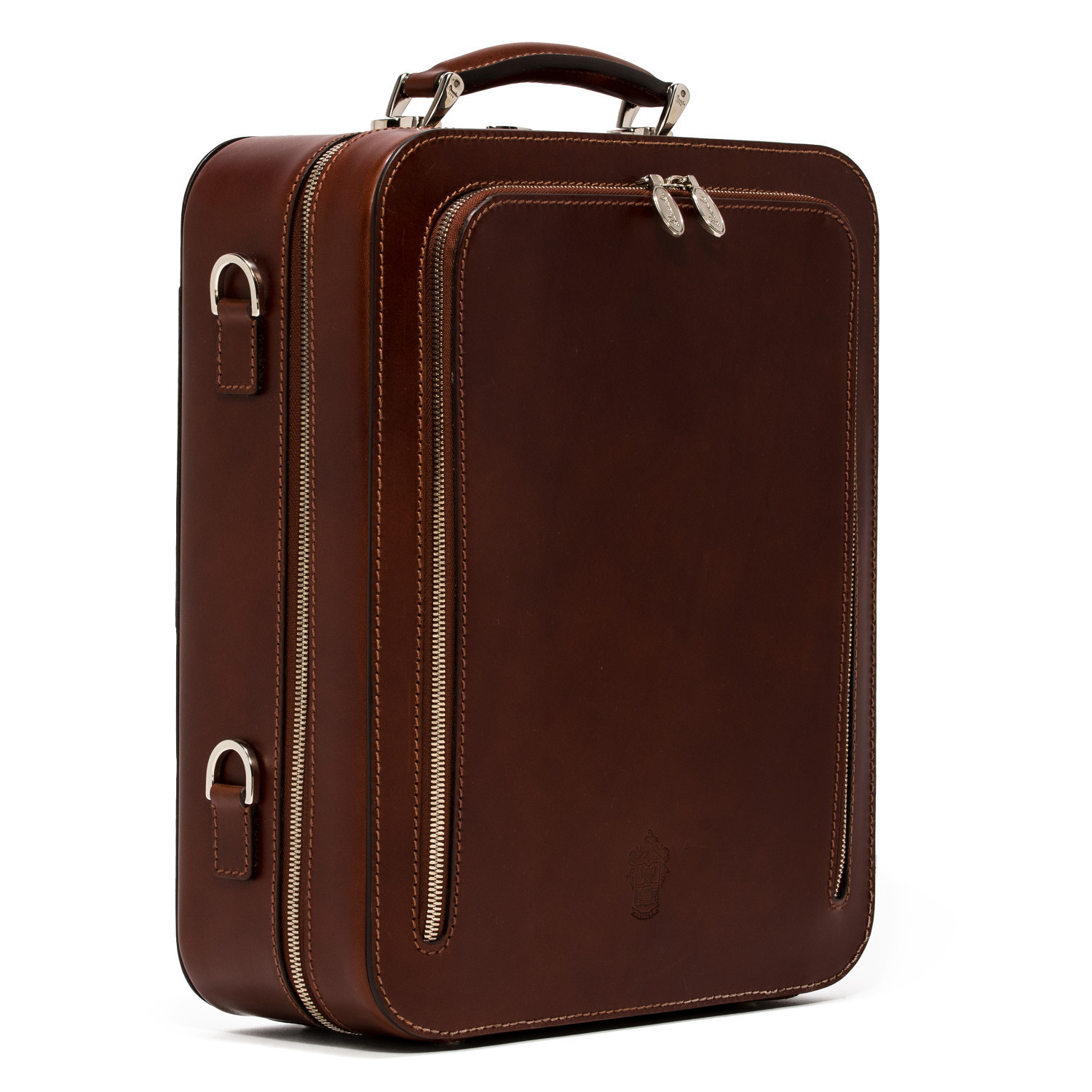 Inspired by an iconic Pineider computer case from the 90s, the Convertible combines elegance with functionality, design and efficiency. The Convertible is produced with first choice leather. It can be transformed from a handbag to a shoulder bag, to finally become a very cool backpack. Power Elegance Collection. Pineider Logo. Made in Italy.
