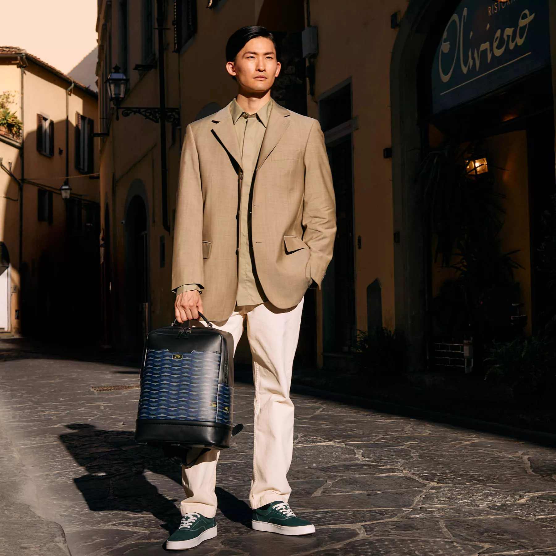 Regular backpack with zip, large compartment and adjustable shoulder straps. Made of genuine Italian leather printed in digital Empress. Pineider logo. Made in Italy.