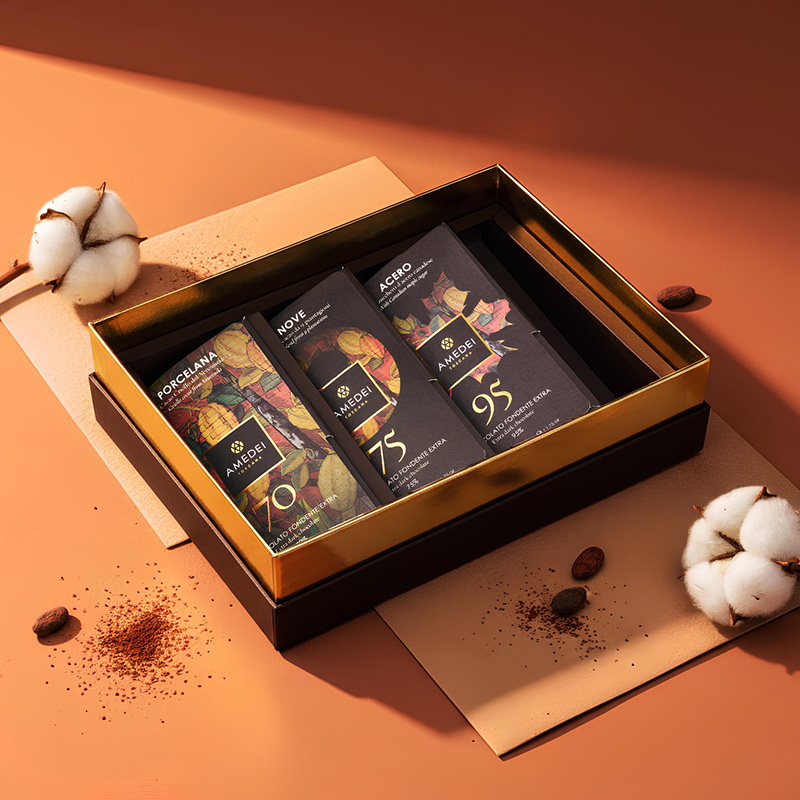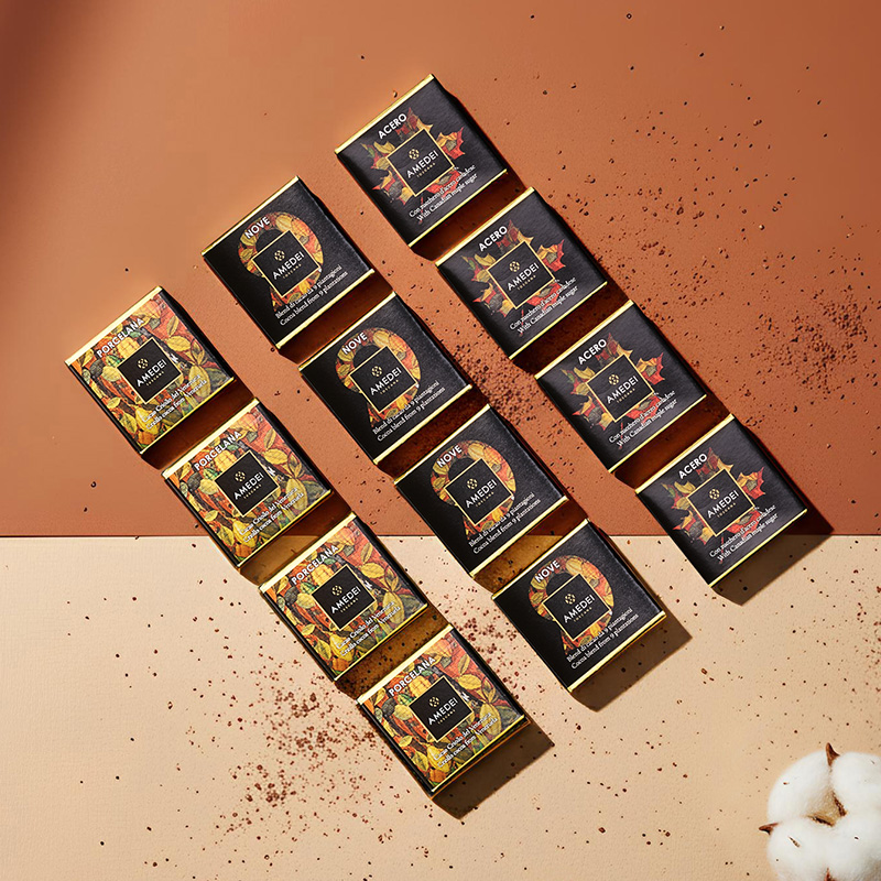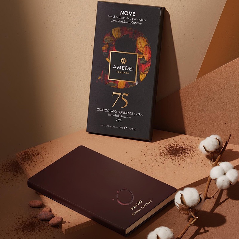 Amedei, eccellenza italiana del cioccolato nata a Pontedera nel 1990, celebra il bean-to-bar lavorando il cacao con metodi naturali e sostenibili, senza additivi.